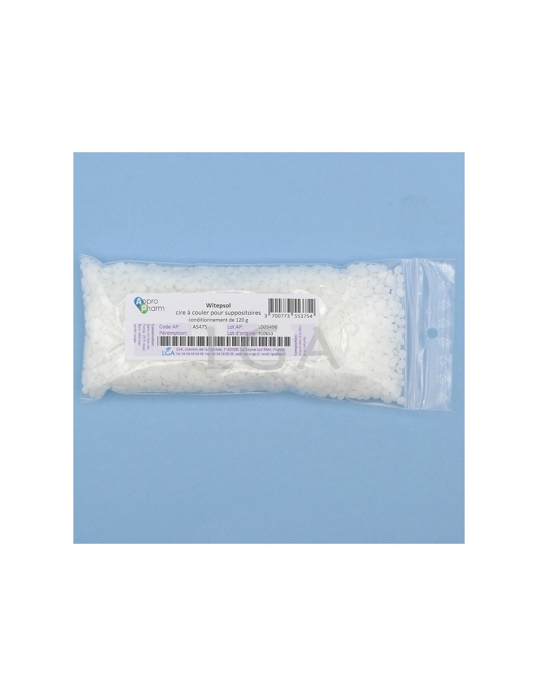 - Use: Manufacture of suppositories and lipophilic products.