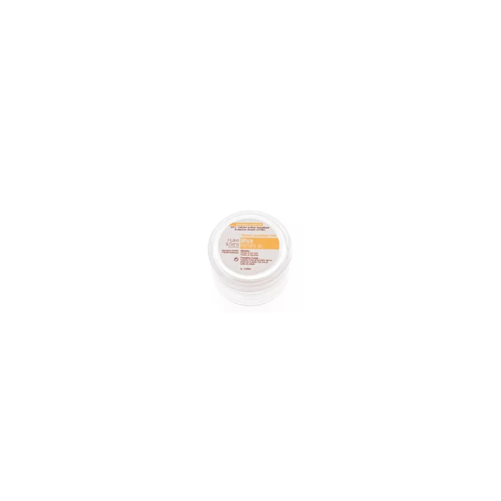 Pigment Mica Reflets Or is a natural mineral pigment that imparts iridescent coloring with golden highlights to cosmetic preparations. This pigment is perfect for adding touches of light and iridescent effects to your make-up products.